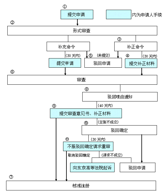⑦中負責的審查官,確定沒有駁回注冊理由時,向申請人發(fā)出核準確定的通知。